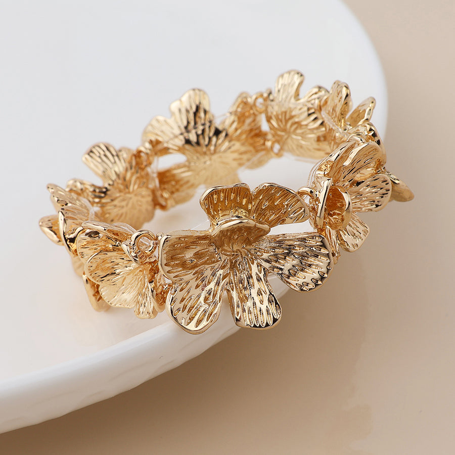 Stretch bracelet with floral blooms featuring defined contours and surface texture