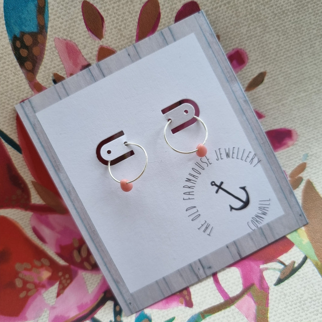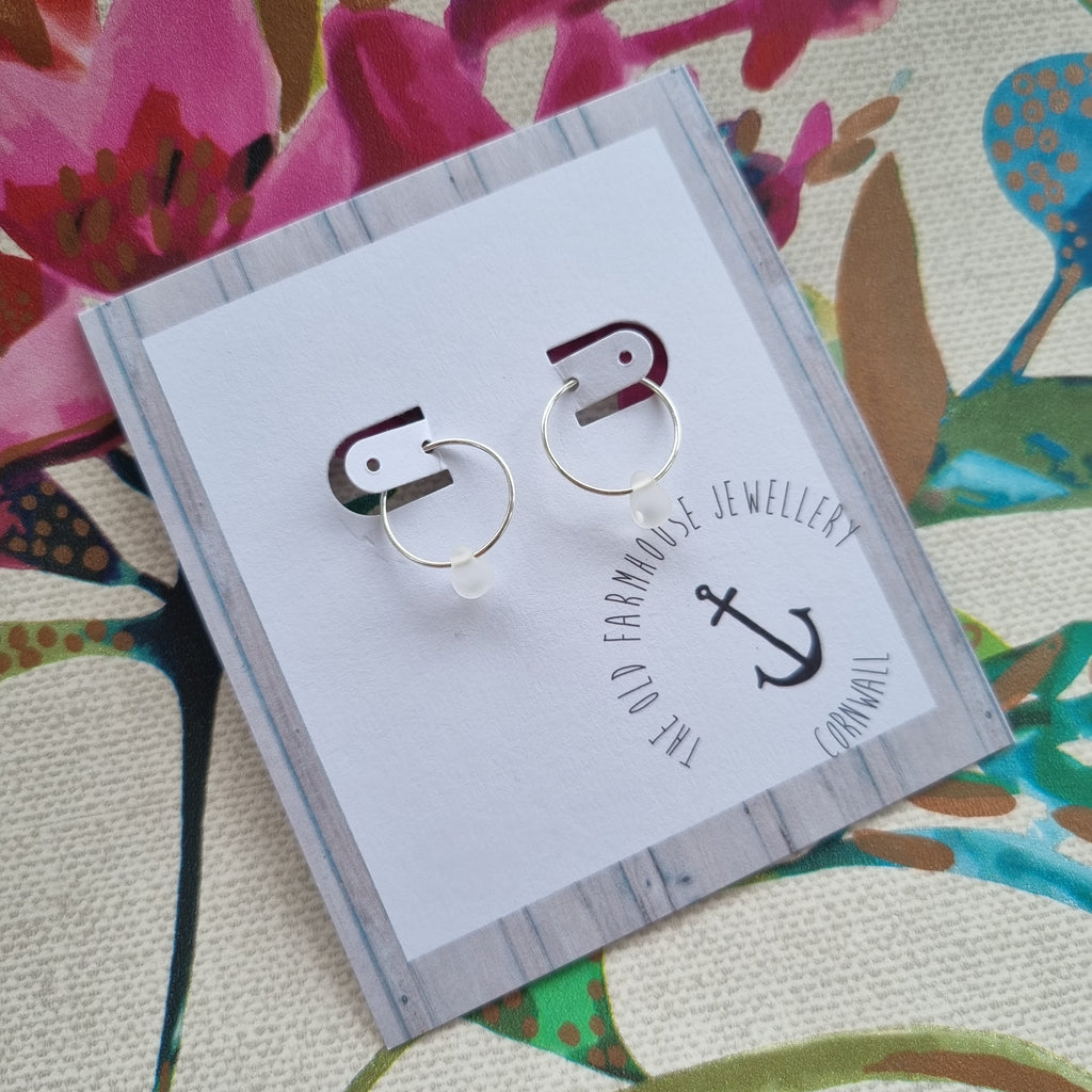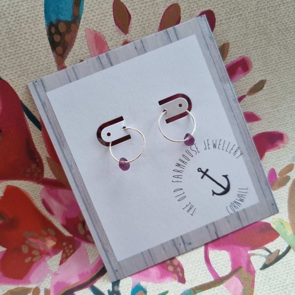 Simple teardrop beads on a sterling silver hoop.