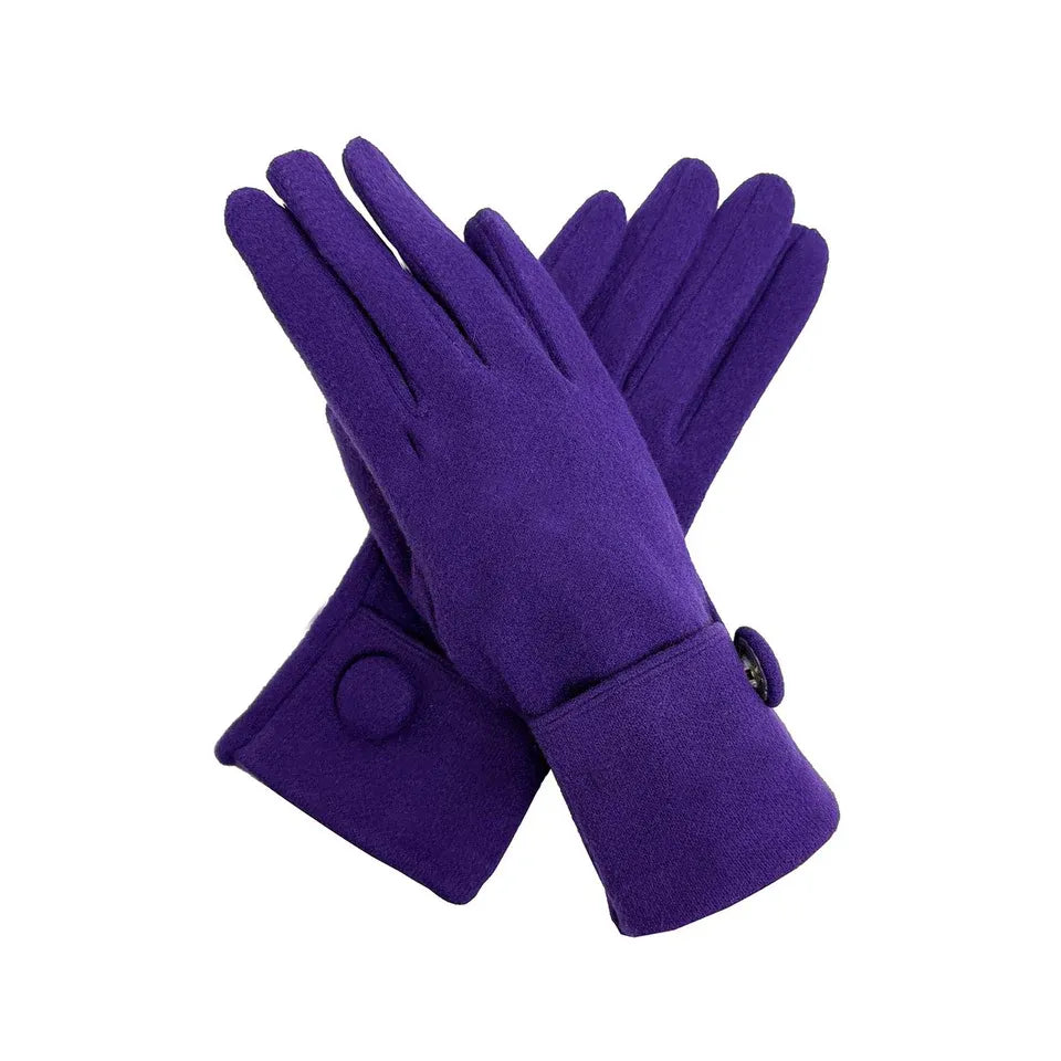 Plain Solid Colour Touch Screen Gloves with Single Button Detailing