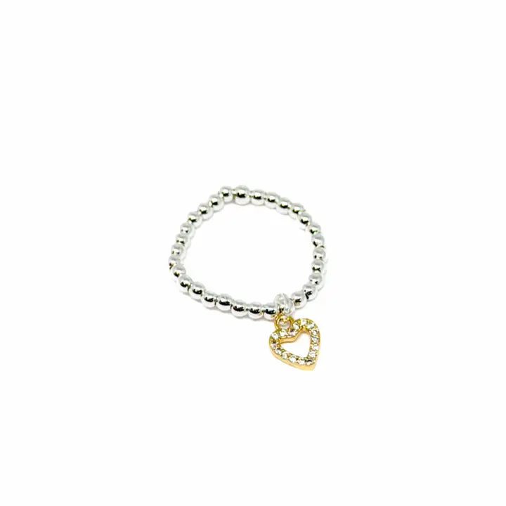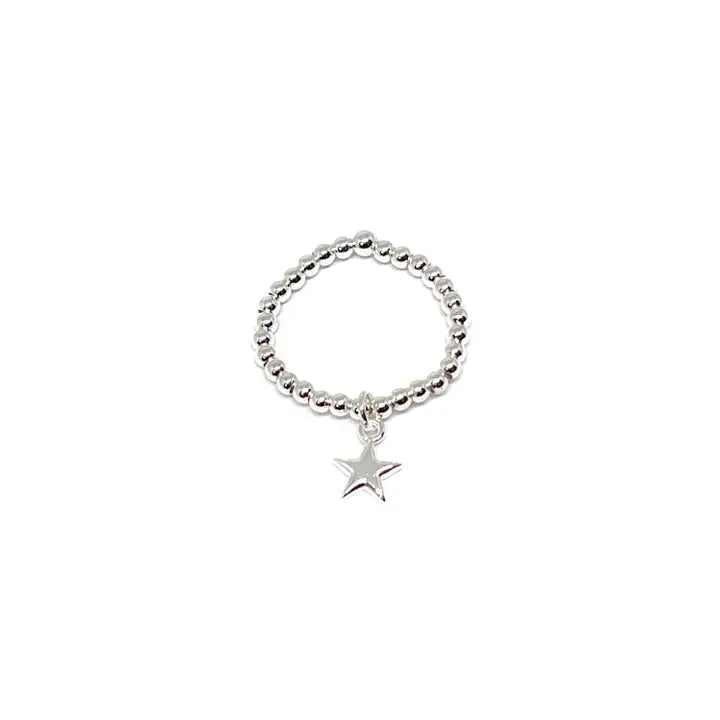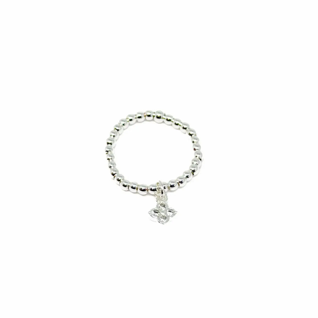 Silver Bead Stretch Ring - Various Charms