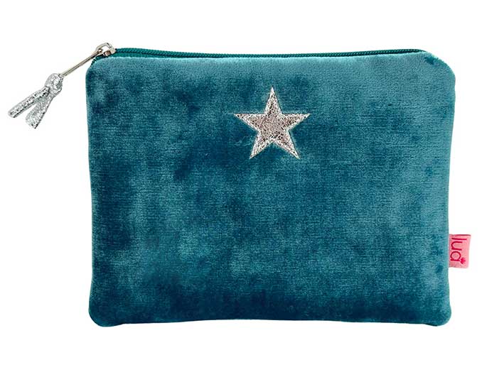 Classic silk velvet purse/pouch with an appliqued little metallic faux leather star.